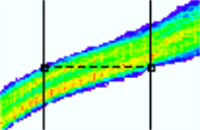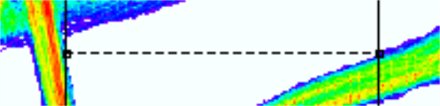 horizontally or vertically at the current mouse position. Originating from the current mouse position, the nearest points in opposite directions are searched either vertically or horizontally. Selecting either of these measurement methods makes it the default mode for 2-point measurement. During the measurement, the coordinates of the two measured points are shown in the Measurement Coordinates window. The difference for the x and y coordinate are also shown, separately. The final results are listed in the Messages window. Alternatively, press the p key to initiate the currently-active measurement mode on a selected chart. Within an eye pattern, this measurement method can be applied inside or outside a colored area. In either case, the boundaries of the area are searched for the measurement. This provides a quick measurement of an eye opening, or the jitter of a signal, for example.