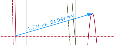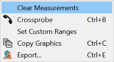 The toolbar button allows you to select either a strict horizontal or strict vertical point-to-point measurement by clicking the displayed arrow. By selecting one of these menu options, either the horizontal or vertical measurement cursor position is fixed. This allows a precise measurement. For example, at a certain voltage level or point in time. Selecting either of these methods makes it the default mode for point-to-point measurement that is used subsequently. |