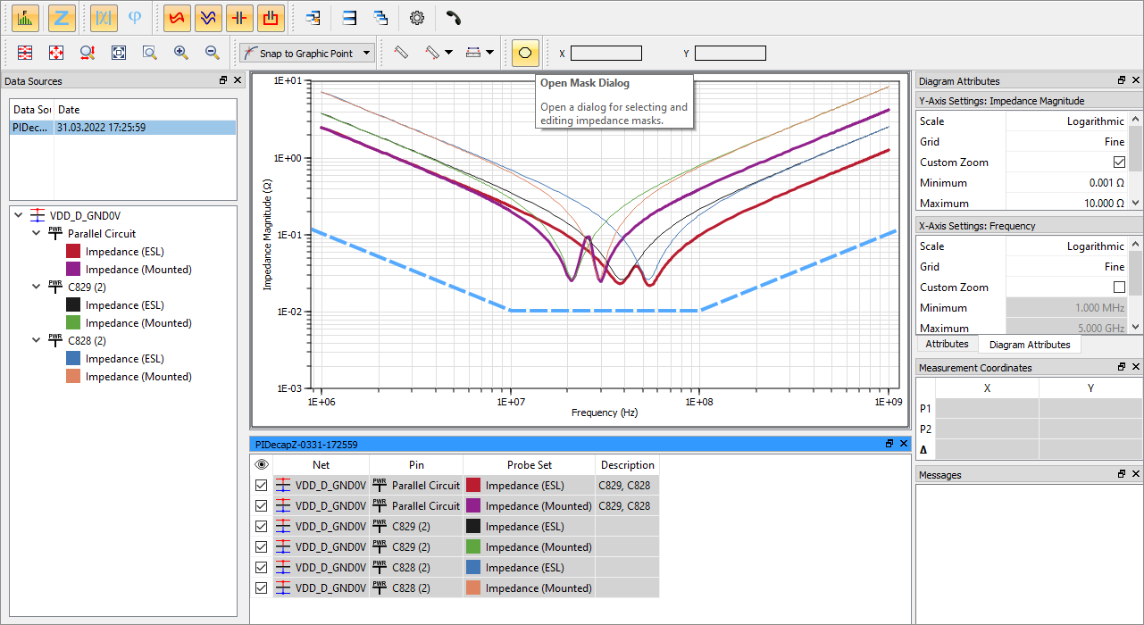Within the Frequency-Domain mode, additional function is available to open the Mask Editor to manage impedance masks.