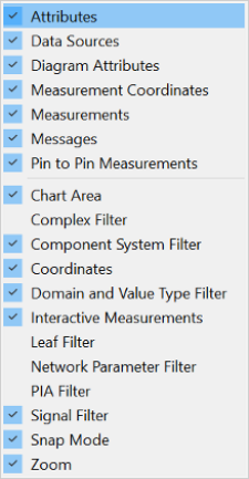 In the S-Parameter and PI and EMI mode, additional axis filters are available. The axis filters that are displayed are dependent on the content of the loaded data.