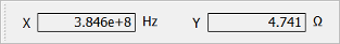 The current cursor position is shown in this toolbar for the x and y axis, depending on the respective units of the displayed quantity. In SI Eye Pattern mode, a third coordinate is added. This displays the number of occurrences in the Histogram view at the location given in X and Y coordinates.