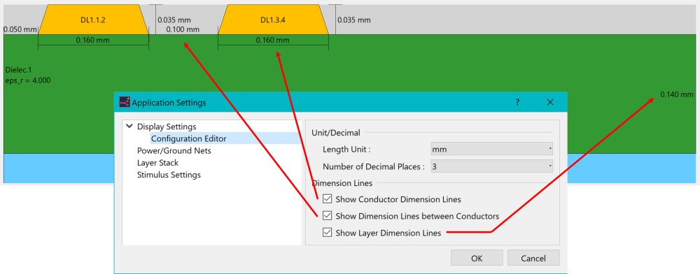 Settings have been added to the Application Settings dialog for Electrical Editor: Configuration Editor. These control the display of dimensions, units and the number of decimal places.