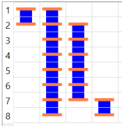 Note If Use core layer is selected in the Rule Editor Dialog: Board Tab, then the padstacks in core layers are not expanded. This setting is illustrated using the following example of the layer spans for an 8-layer board with no core layers.