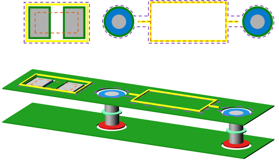 - As a minimum requirement in Footprint Editor, two component area layers and one hole layer are required.
