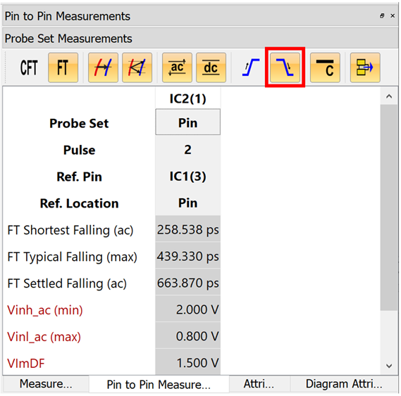 These measurements can be verified against the automated measurements made in the Pin to Pin Measurements panel.