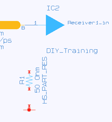 - Right-click to launch the assist menu, and then select Rotate > Rotate 90 Deg (CounterClockWise). Place the resistor near to the receiver pin as shown below. By default, this is a "50 Ohm” resistor.