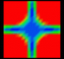 With m = 0; 1; 2;... ; n = 0; 1; 2;... ; where m and n are the order of the cavity mode. The values w, and l are the X, Y dimensions of the plane. The above equation is a good approximation of the cavity mode equation in 3D, when the height of the cavity is very small compared to the length and width of the plane. For the first two-dimensional mode, the equation simplifies to the following.