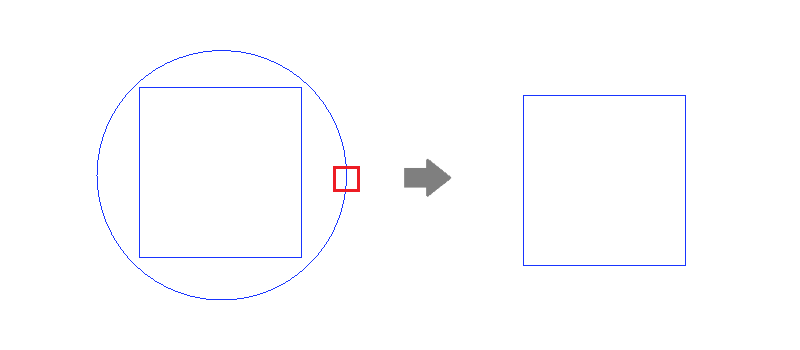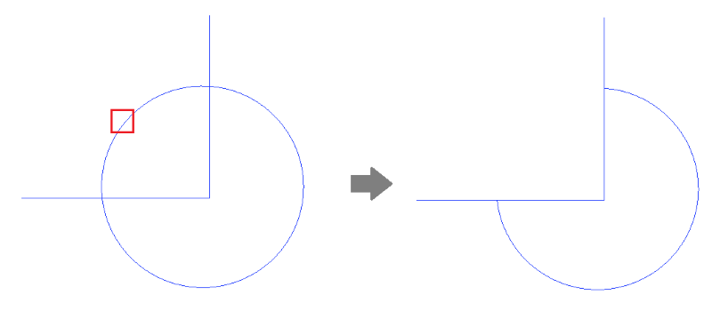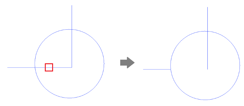 In the following example, the portion of the circle is deleted that is created by a circle overlapping a polyline, when you click the indicated position.