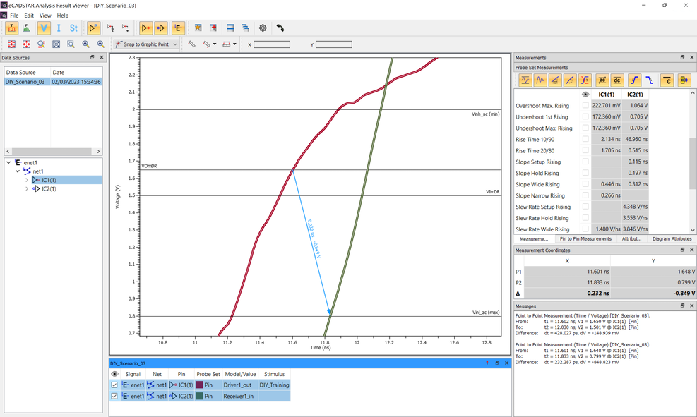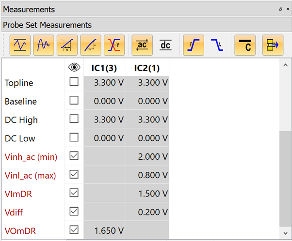 These measurements can be verified against the automated measurements made in the Pin to Pin Measurements panel.