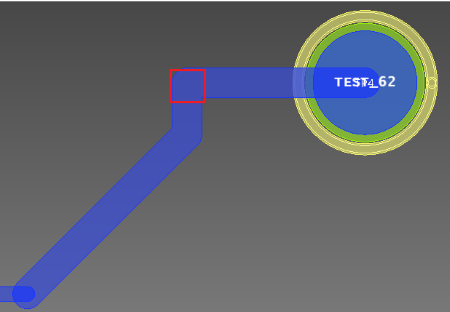 If you continue to route an existing track by adding a new portion to it, then the width of the new portion is inherited from the existing track that you select. The Fix track width button must be toggled off, to make this functionality available. To continue routing a narrow track, to join a wider track, click on the narrow track in the position shown below.