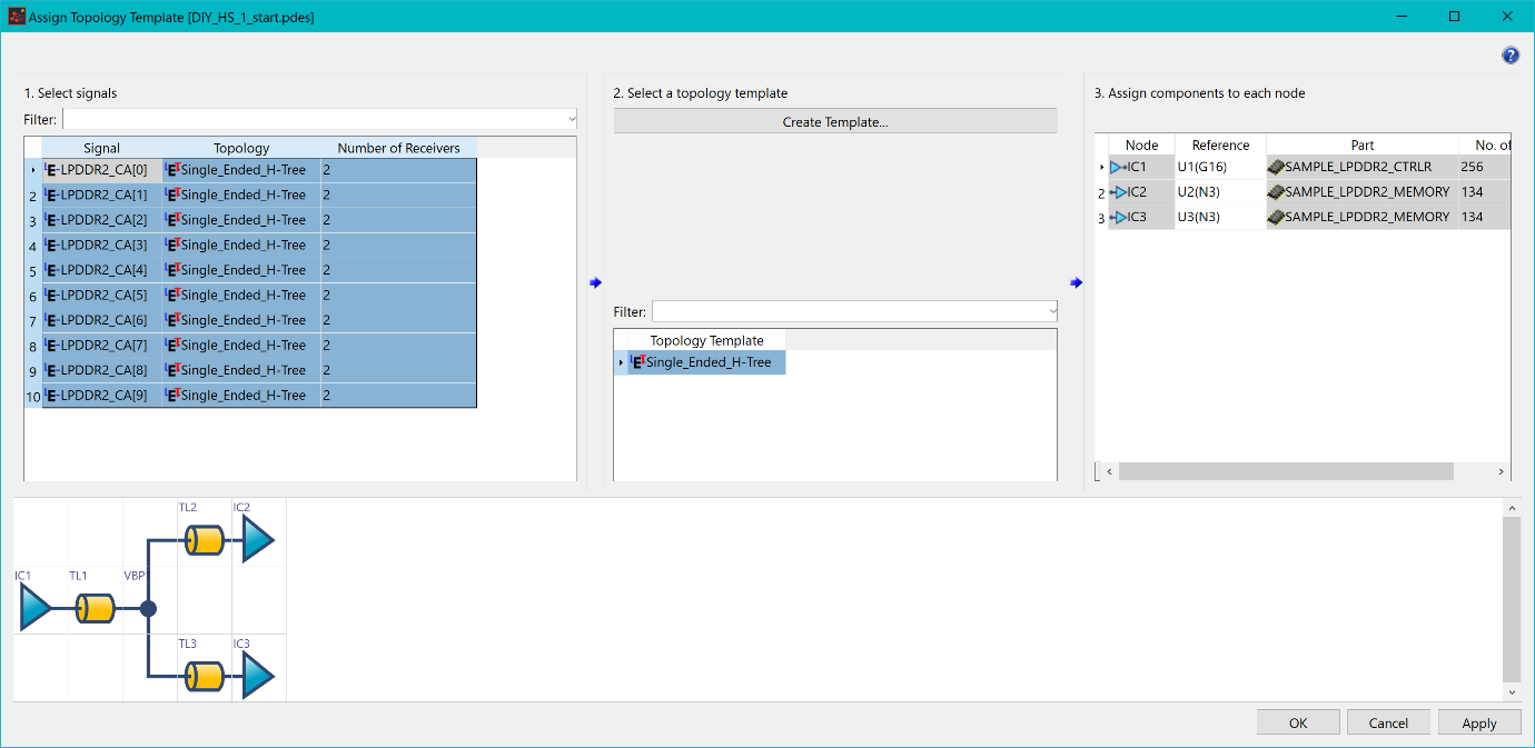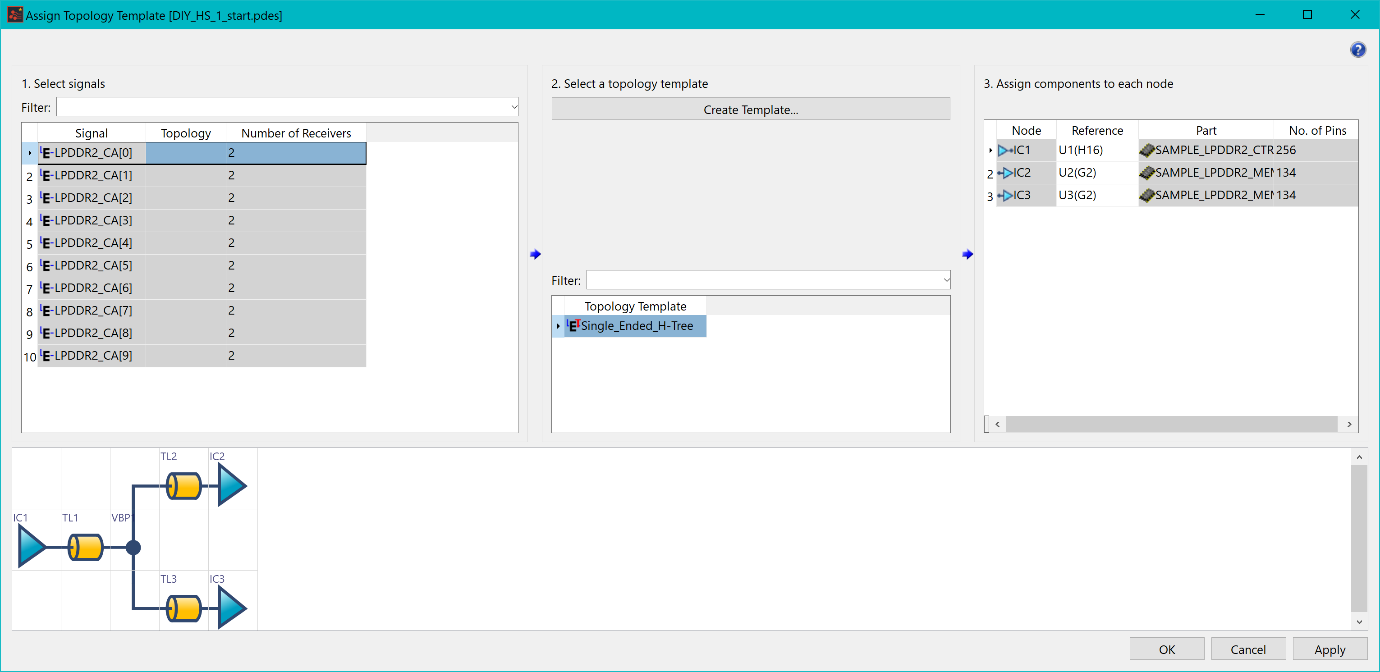 - In the Assign Topology Template dialog, ensure that all signals are selected that are associated with the LPDDR2_CA[0-9] bus.