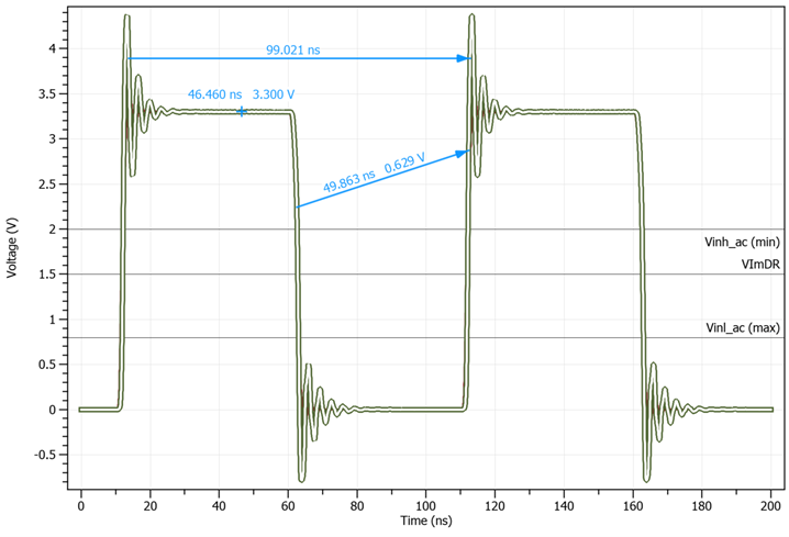 These measurements can be verified against the automated measurements made in the Pin to Pin Measurements panel.