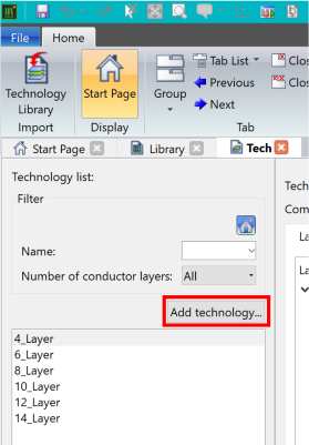 - In the Add Technology dialog, set the Technology Name and Number of Conductor Layers as follows: